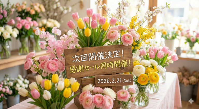 毎月1回 岡崎市民会館にて展示即売会やレッスンを開催しており、プリマの商品や国内の品質の良いアーティフィシャルフラワーを取り寄せてアレンジしております。